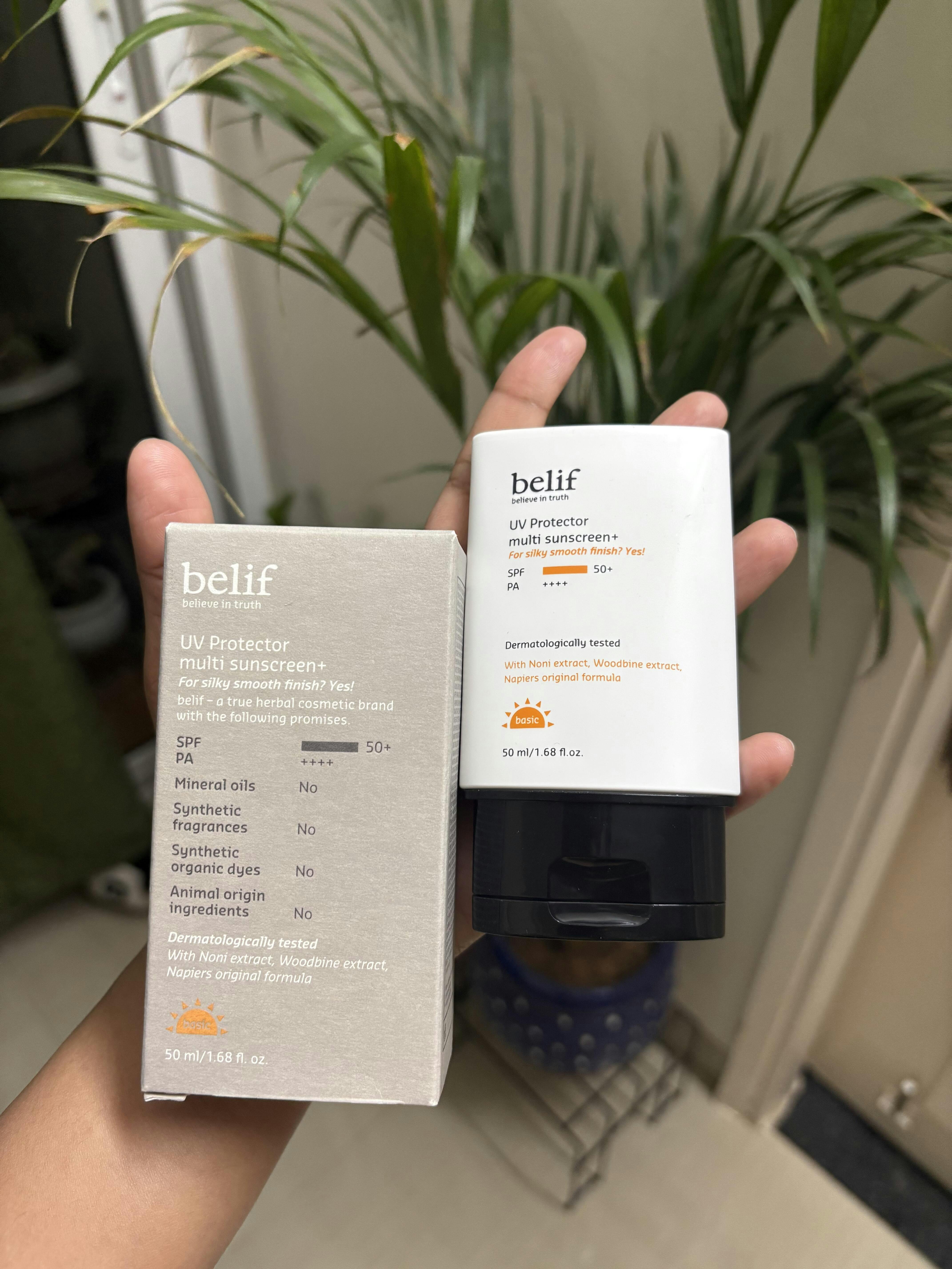 +UV Protector Multi Sunscreen+ SPF50+ / PA++++ is formulated for all skin types, including oily, sensitive, and combination skin. The lightweight texture feels comfortable, absorbs quickly, and won’t clog pores or feel greasy. Dermatologically tested, it’s gentle enough even for delicate skin.